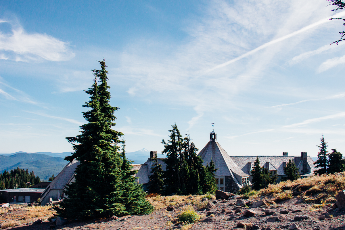 From Hood River we turned south and drove up into the Cascades to Timberline Lodge, halfway up Mount Hood. From there we could admire the rest of the glacial peak, jutting up another 6000 feet or so from where were standing.