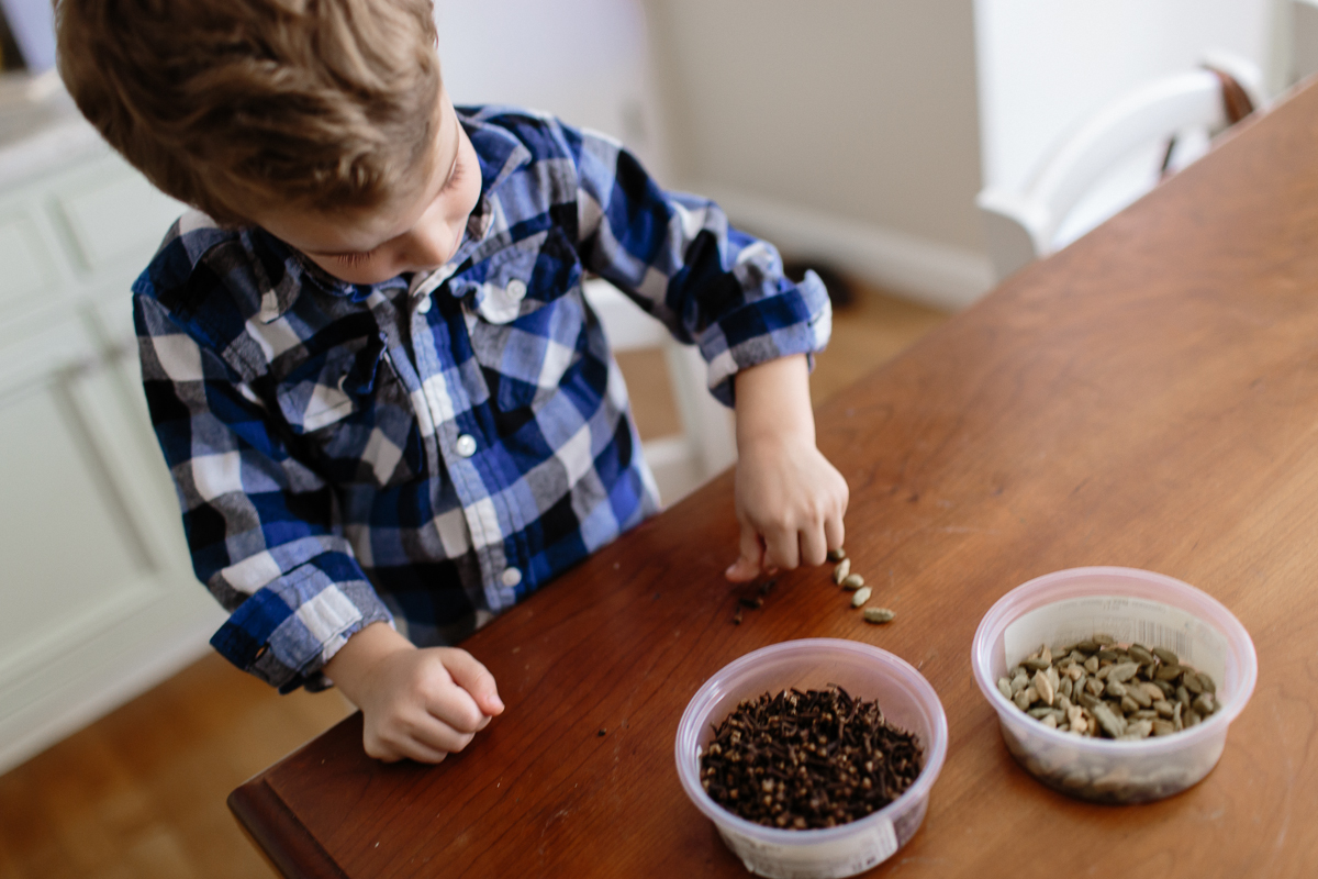 This is surprising even to me, as this particular 3-year-old typically rejects all drinks except water, but he seems to make an exception for a good cup of tea. His usual go-to is chamomile, but recently I’ve been introducing him to other varieties (yes: decaf!), since these days he is willing to experiment with most new flavors, under one condition: we have to call it a “tasting.” Our flagship spice tasting session kicked off our obsession with having tastings for everything, and now most mealtimes involve everything from fruit tastings to meat tastings, cheese tastings to herb tastings to tea tastings (I know–it’s so West Coast of us).